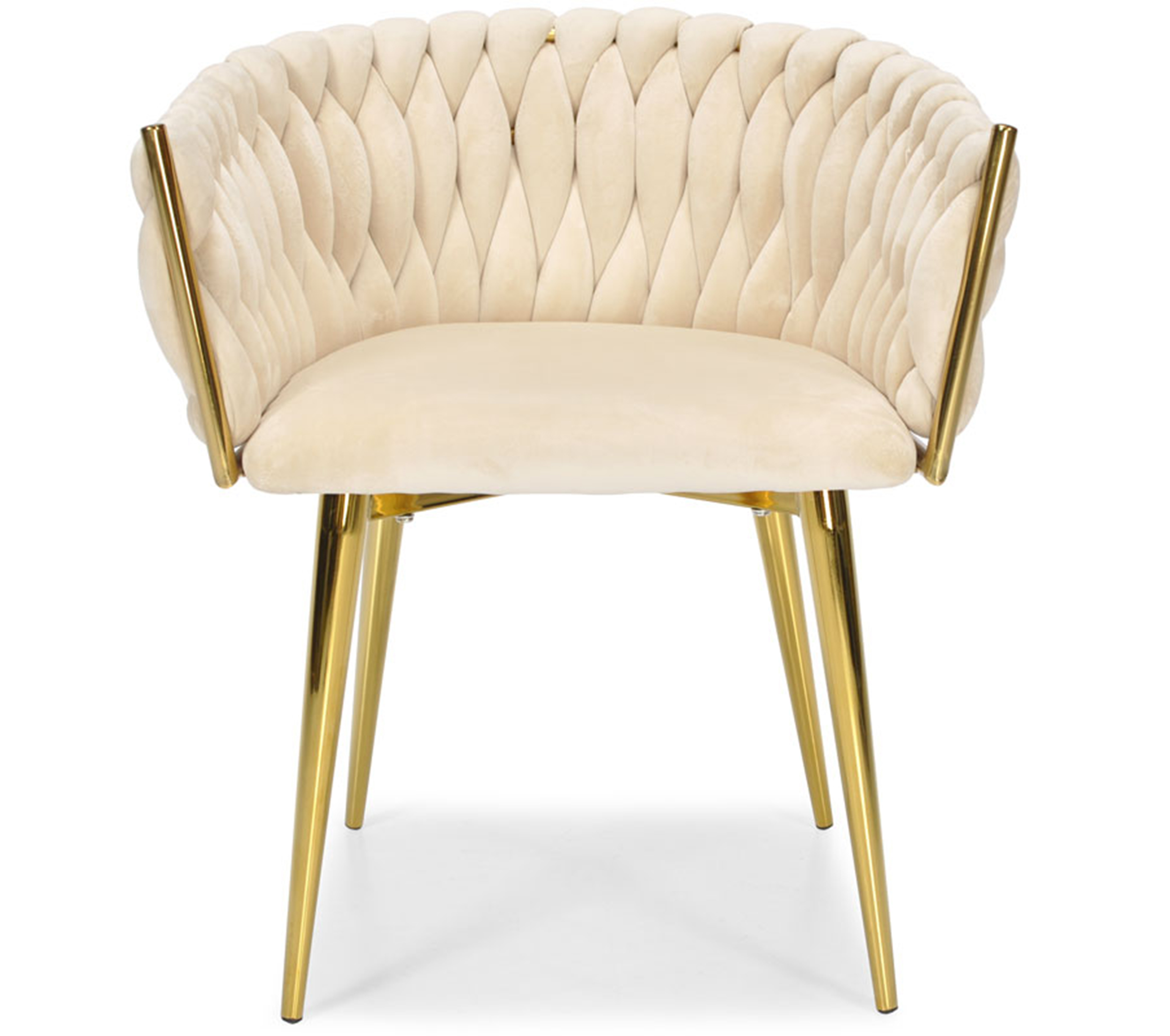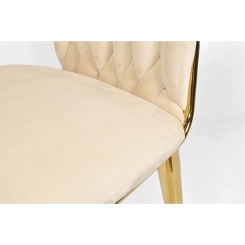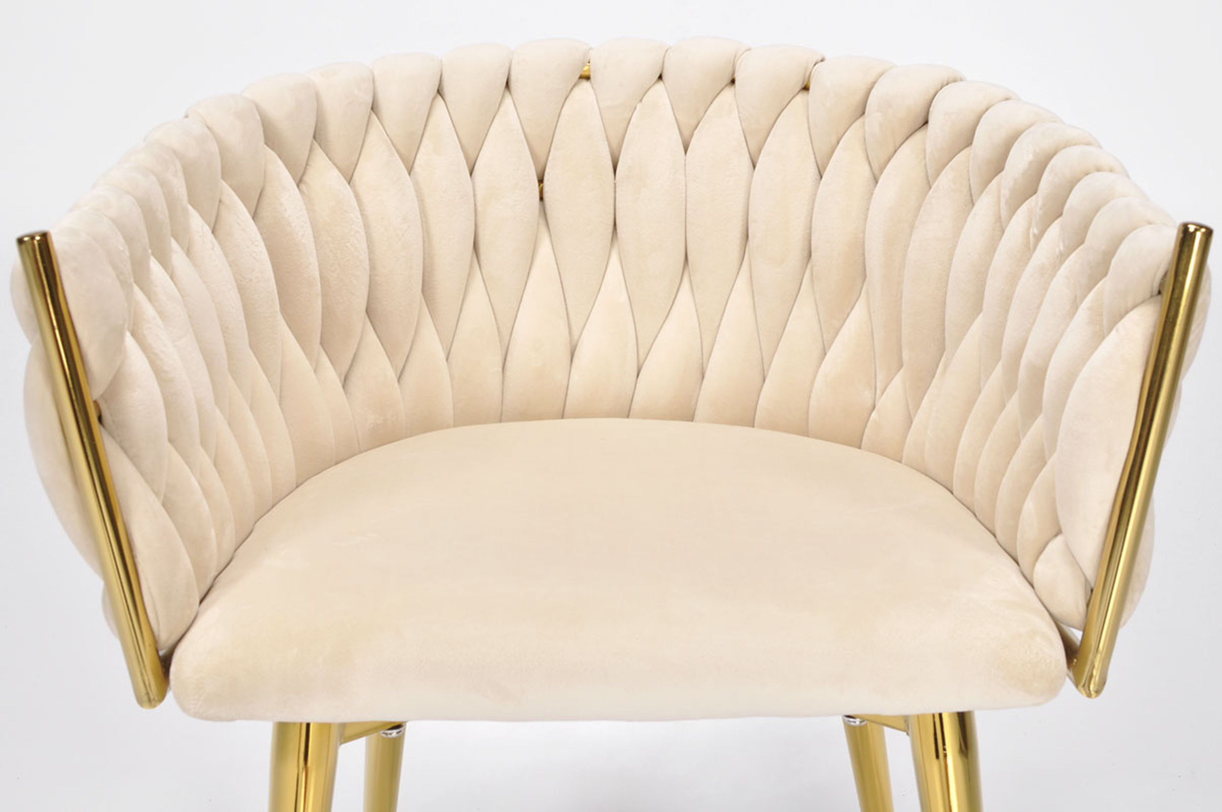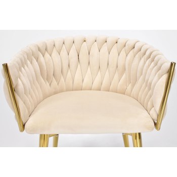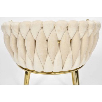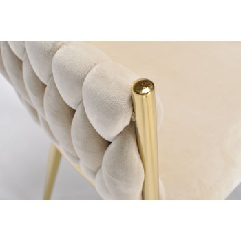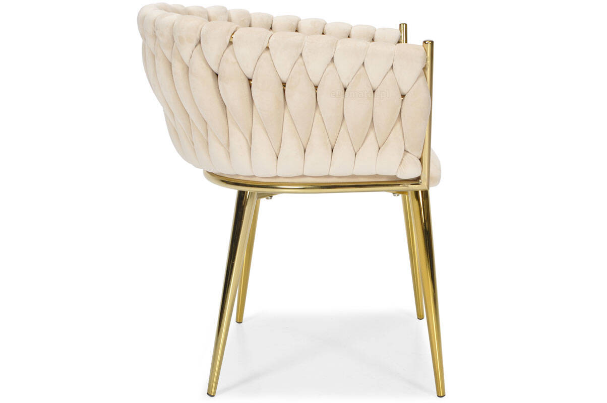 KRZESŁO WELUROWE GLAMOUR – BEŻOWE | ZŁOTE NOGI | PLECIONE | NOWOCZESNE I ELEGANCKIE