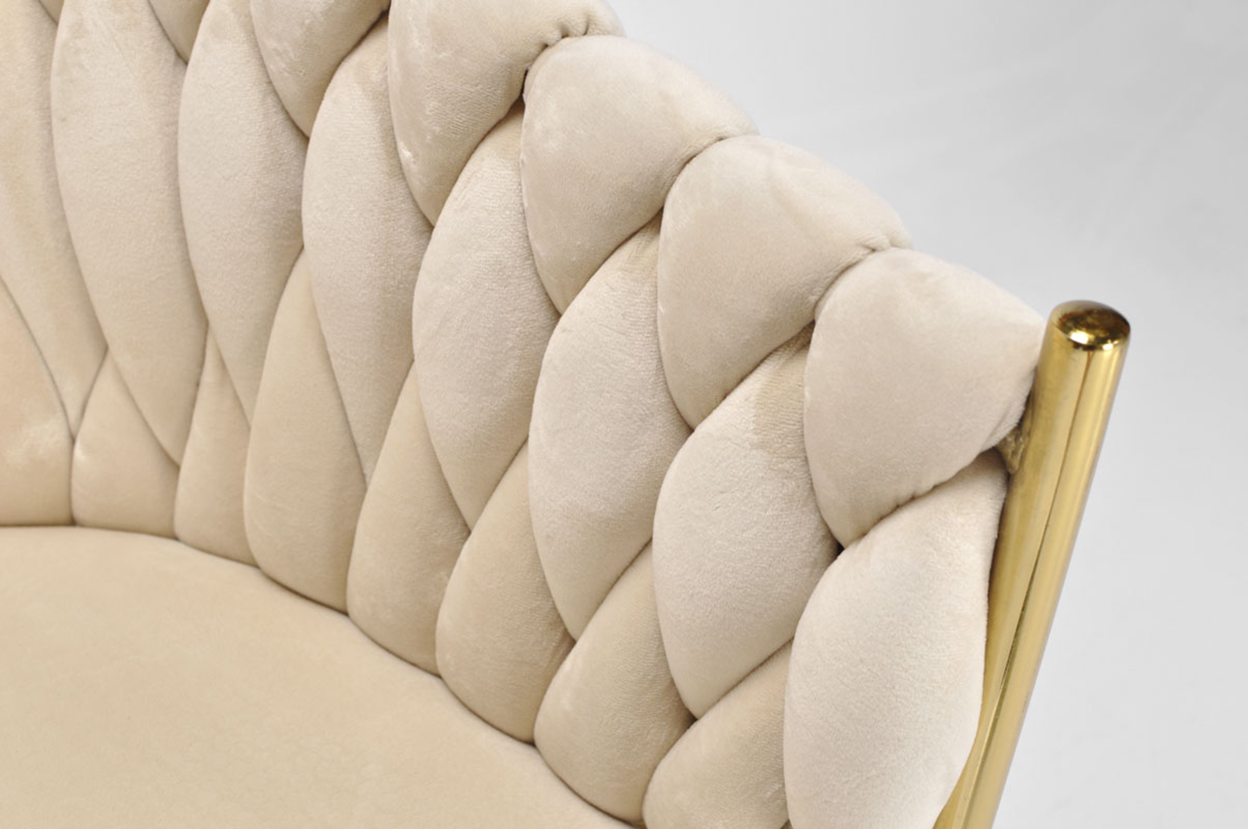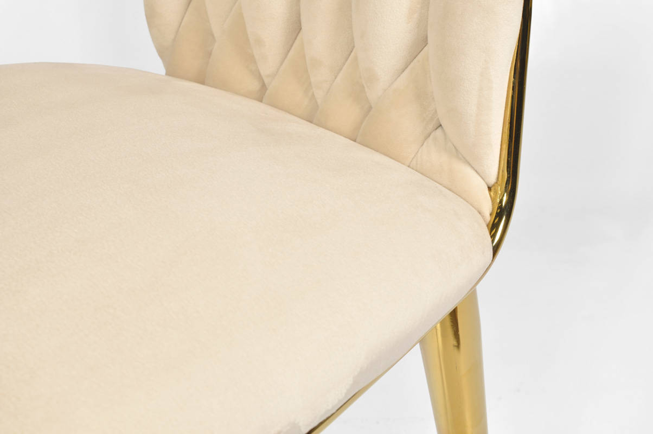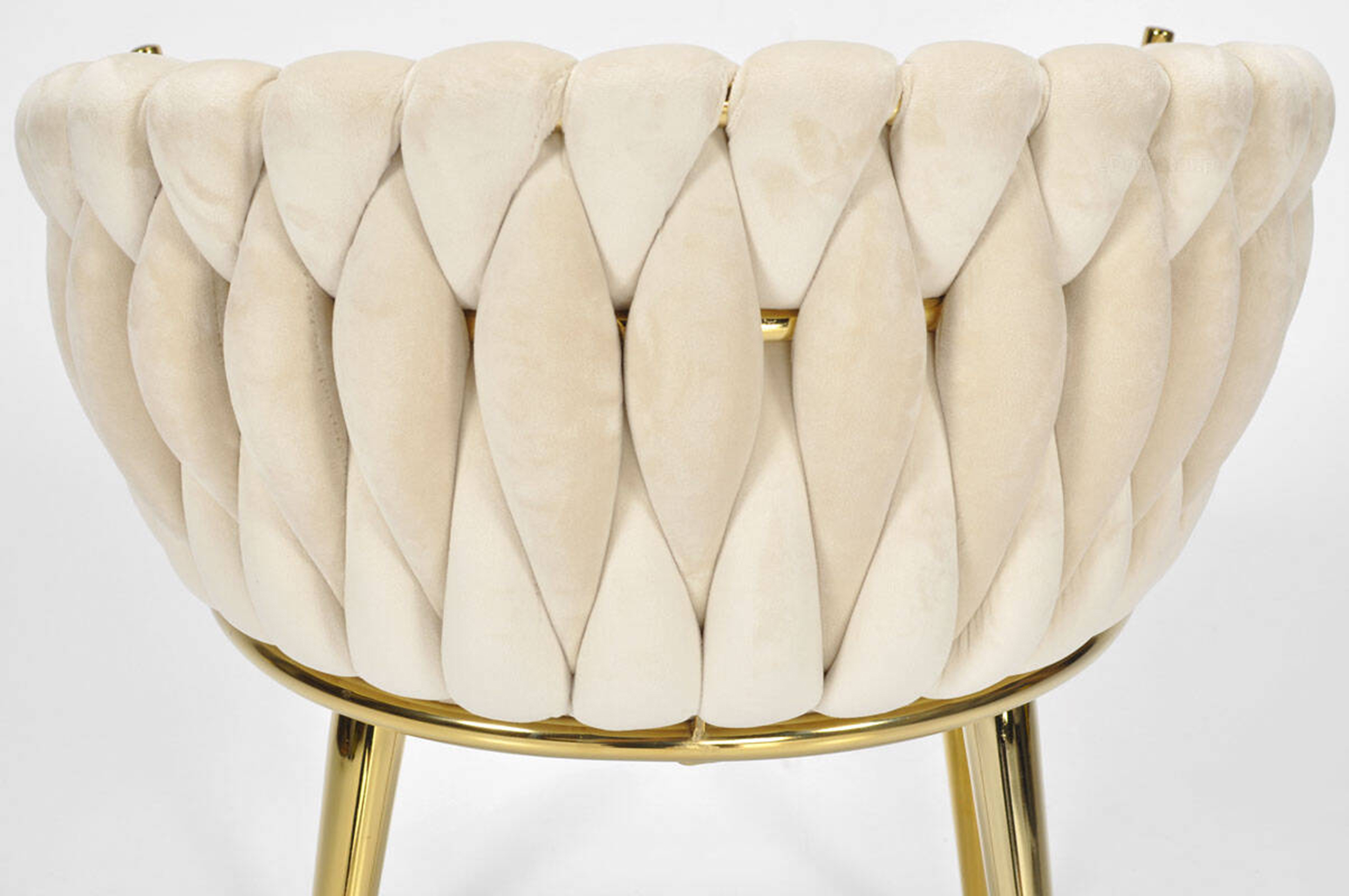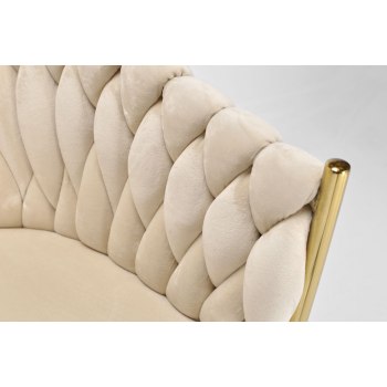 KRZESŁO WELUROWE GLAMOUR – BEŻOWE | ZŁOTE NOGI | PLECIONE | NOWOCZESNE I ELEGANCKIE