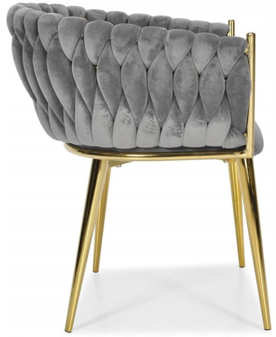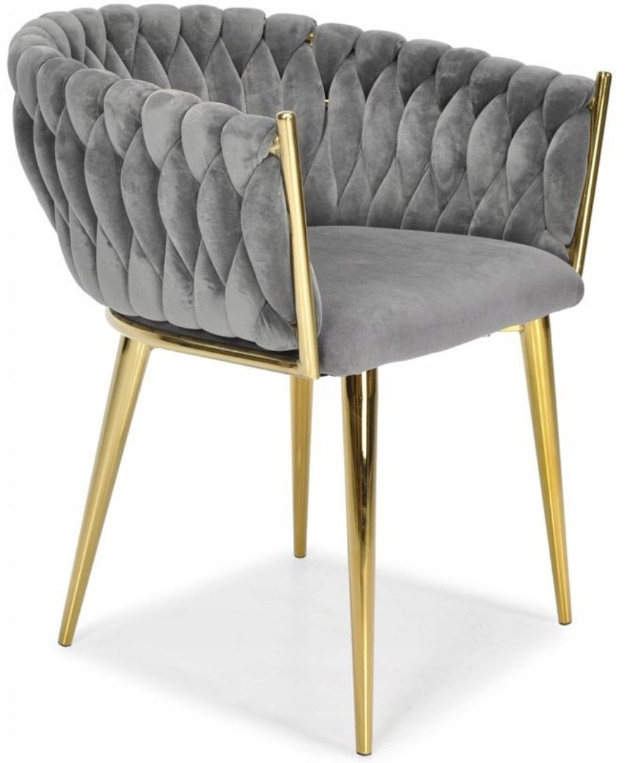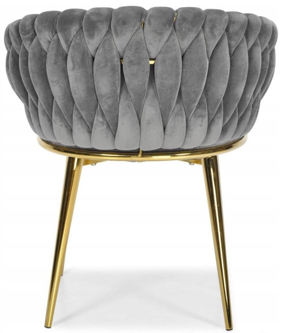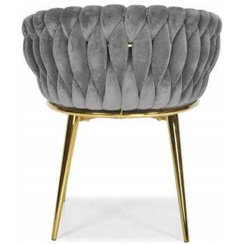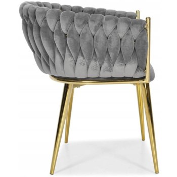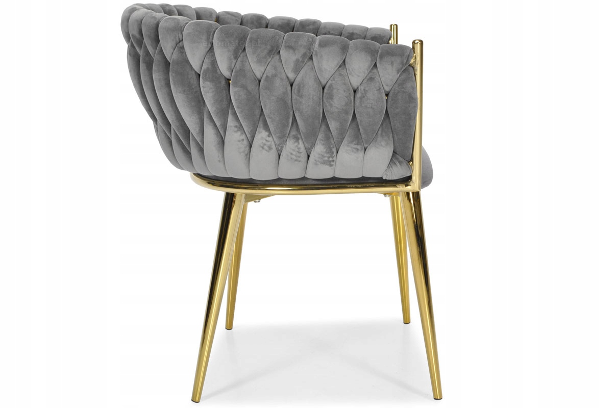 KRZESŁO WELUROWE SZARE GLAMOUR – ZŁOTE NOGI, PLECIONY NOWOCZESNY DESIGN
