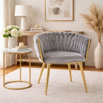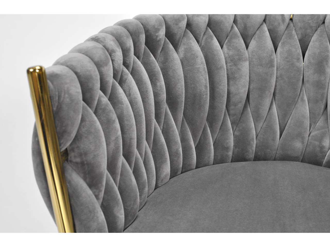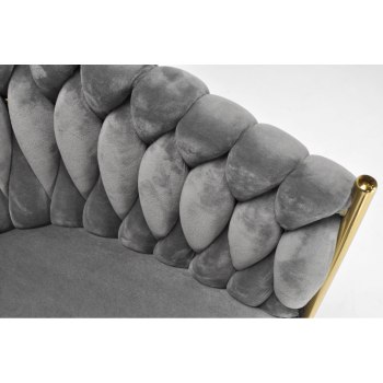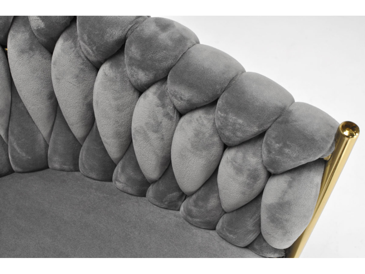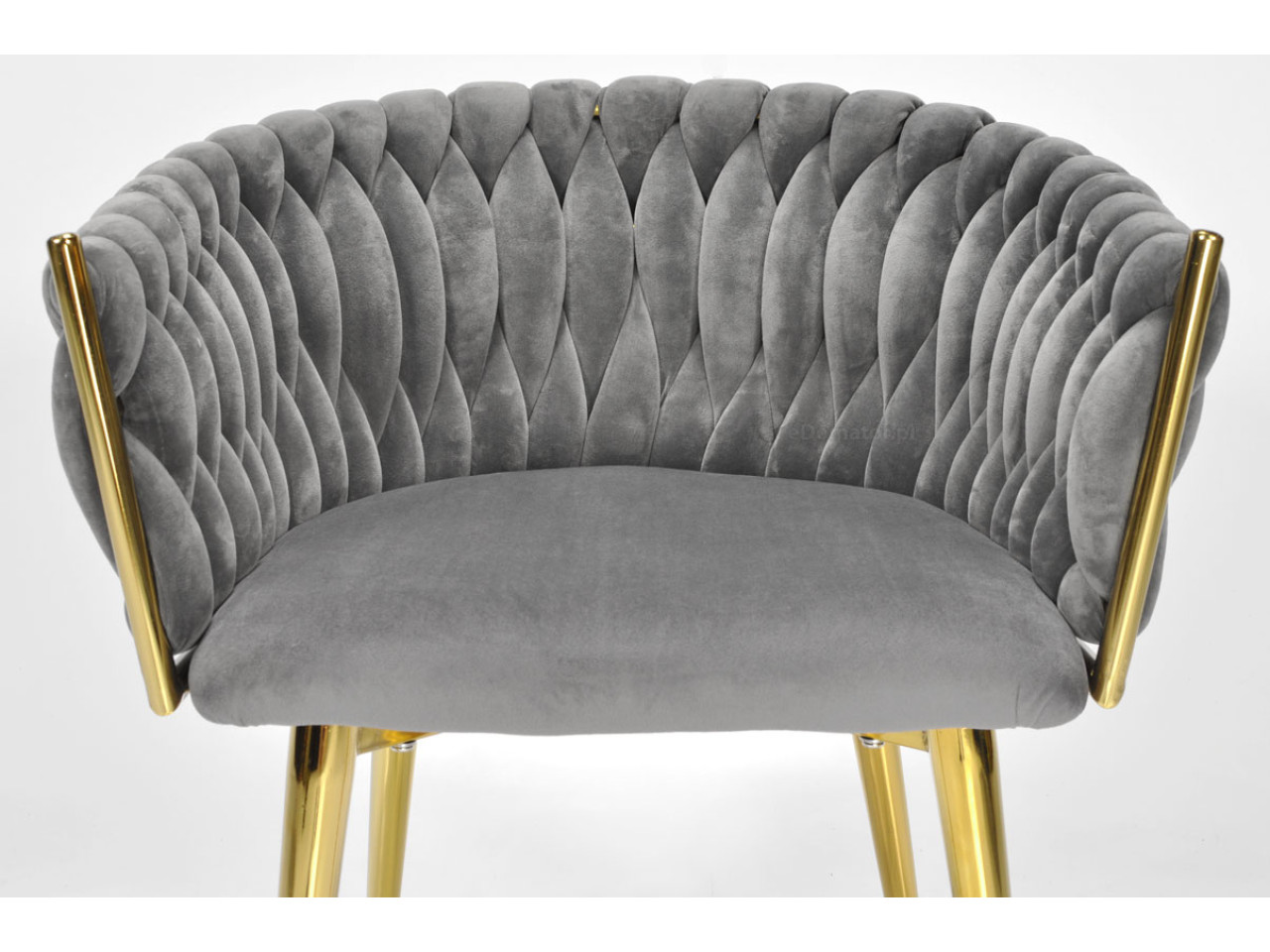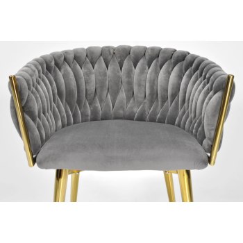 KRZESŁO WELUROWE SZARE GLAMOUR – ZŁOTE NOGI, PLECIONY NOWOCZESNY DESIGN