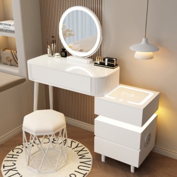 - Zestaw zawiera: toaletkę, komodę boczną, lustro LED, taboret