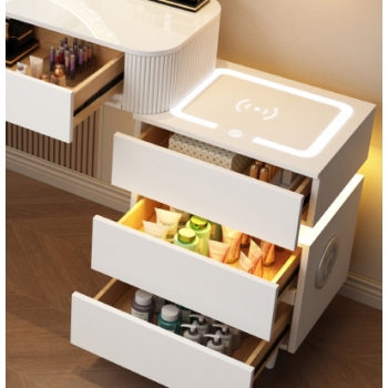 Poznaj wyjątkową toaletkę kosmetyczną LED Eliza, która łączy w sobie nowoczesny design, elegancję oraz praktyczne rozwiązania technologiczne. Ten zestaw mebli z oświetleniem LED i ładowarką indukcyjną to idealne miejsce do codziennej pielęgnacji, makijażu oraz relaksu.