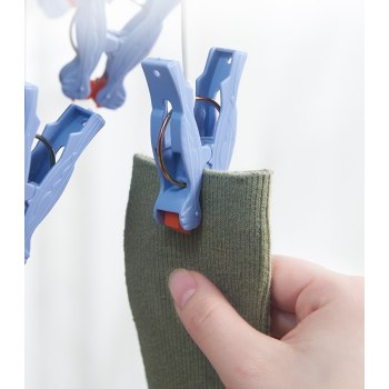 - Bezpieczeństwo dla ubrań: Ergonomiczne klamerki z perforacją zapobiegają wyślizgnięciu się prania.