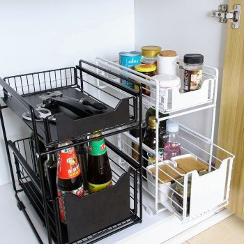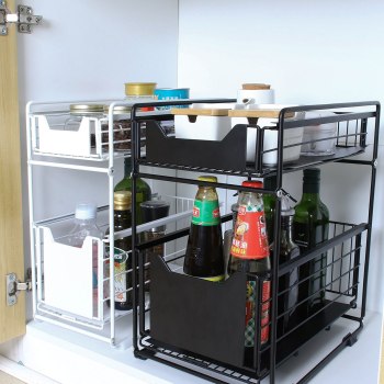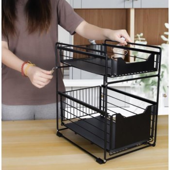 Organizer kuchenny z dwoma pojemnymi półkami — czarny