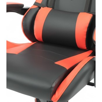3. Poduszki wspierające odcinek szyjny i lędźwiowyFotel wyposażono w dwie regulowane poduszki: zagłówek oraz poduszkę lędźwiową. Obie można przesuwać w zależności od wzrostu i preferencji użytkownika, co pozwala idealnie dopasować ich położenie. Dzięki nim mięśnie szyi i dolnej części pleców są odpowiednio odciążone. To rozwiązanie znacząco poprawia komfort, szczególnie podczas wielogodzinnych sesji.