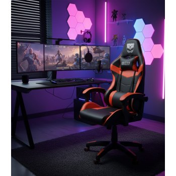 Dynamiczne połączenie czerni i pomarańczowych akcentów nadaje mu charakteru, a stylowe przeszycia podkreślają sportowy, profesjonalny wygląd inspirowany fotelami samochodów wyścigowych. To właśnie ten model odmieni komfort Twojej rozgrywki i pracy — od pierwszej minuty użytkowania.